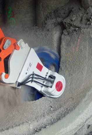 Одной из отличительных особенностей является возможность фрезерования материалов на глубине до 30 метров, что позволяет производить демонтаж фундамента зданий и применять для других нестандартных ситуаций.