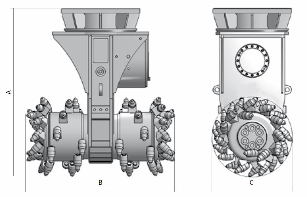 Еще один важный параметр – рекомендуемый вес экскаватора или другого носителя для фрезы с поперечной режущей головкой. Их масса может достигать от одной до 125 тонн.