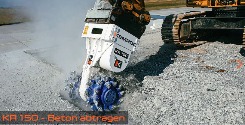 Роторная фрезаВ дополнение к стандартным или конвертируемым цепным фрезам, теперь есть и классические роторные фрезы от KEMROC. Основную серию составляют модели новой серии KR. Обладая особо прочной конструкцией, они являются идеальным навесным оборудованием для носителей с короткими стрелами в ограниченных местах - особенно при строительстве туннелей - а также для работ по разрушению железобетона с низким уровнем вибрации и шума. | ![]() |