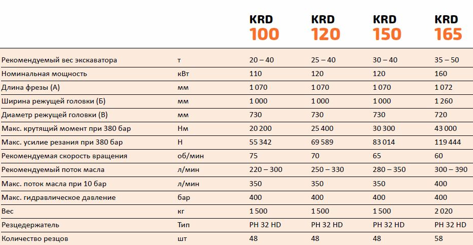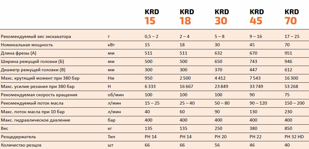 Краткие технические характеристики фрез серии KRD
