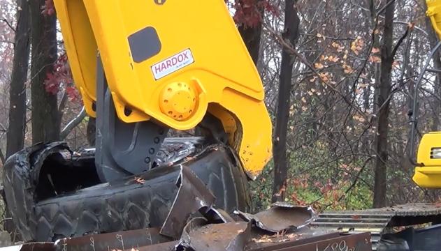 - Переработка шин: с помощью гидроножниц можно легко подготавливать шины с металлокордом для дальнейшей утилизации или переработки.