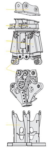 ![]() | Гидравлические ножницы серии СU: Установка гидроножниц производится на рукоять экскаваторов весом от 13 до 50 тонн. |