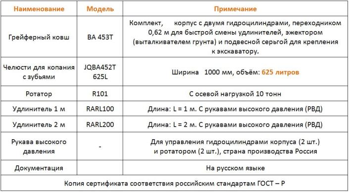 | Двухчелюстной грейферный ковш серии ВА453Т Производитель: завод ARDEN EQUIPMENT S.a.s., Франция Грейферы серии ВА453Т применяются на экскаваторах массой от 18 до 22 тонн. |