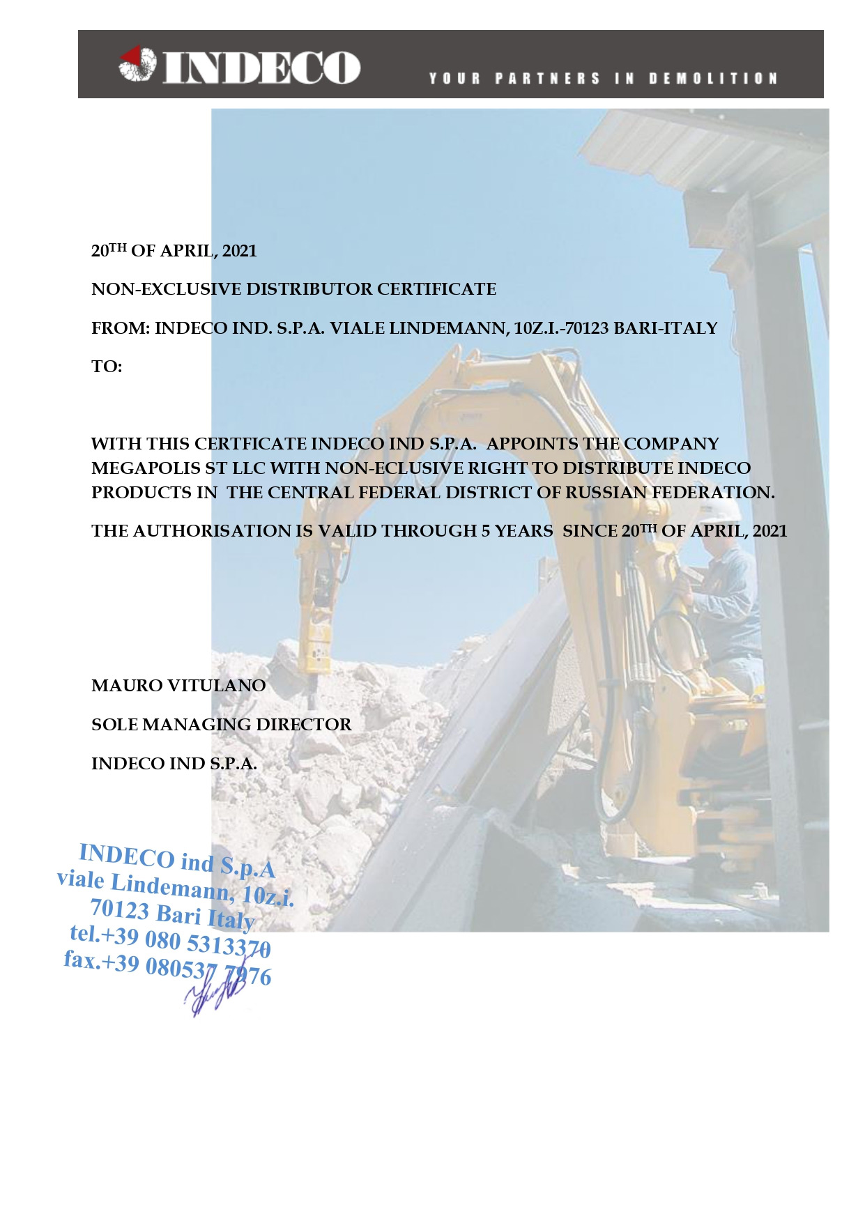 ООО МЕГАПОЛИС-СТ является официальным дилером данных компаний на территории Российской Федерации с самого начала своей деятельности и гарантирует непревзойденное качество всего навесного оборудования, которое поставляет своим клиентам.