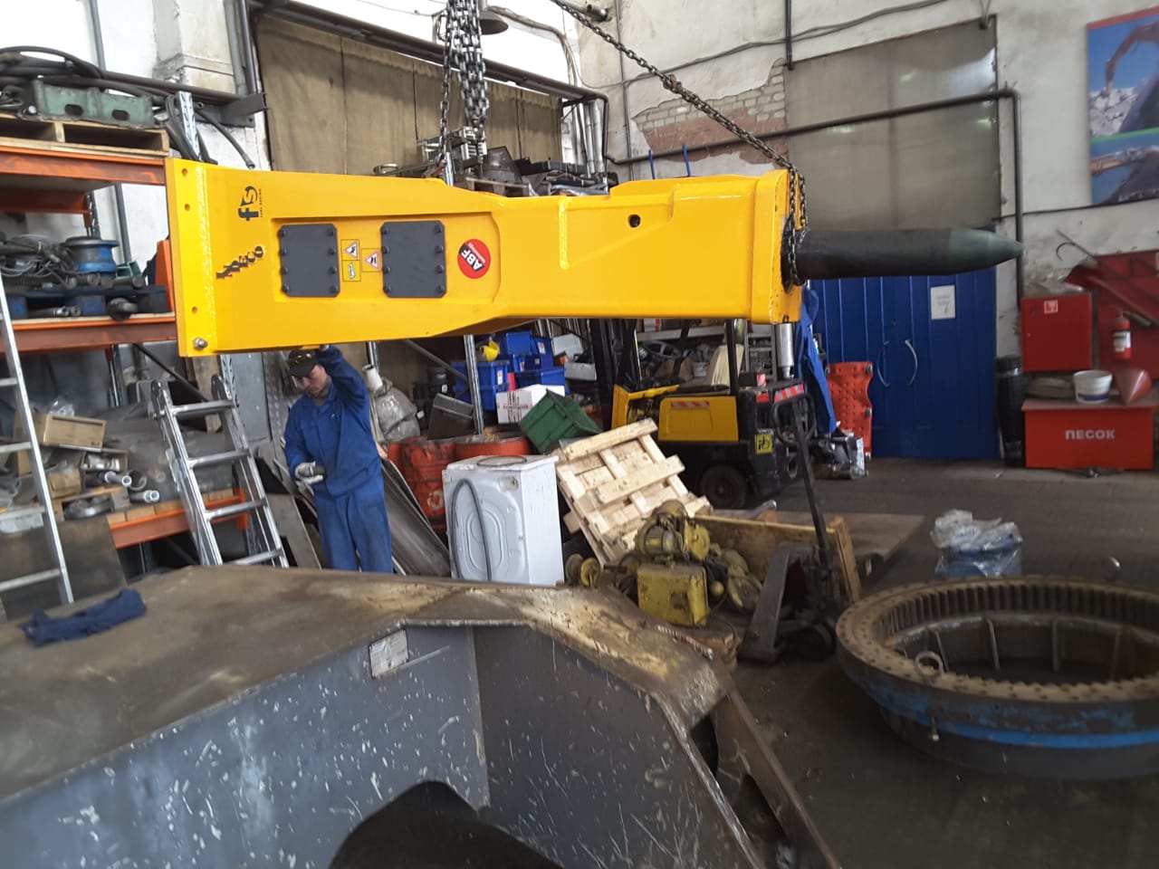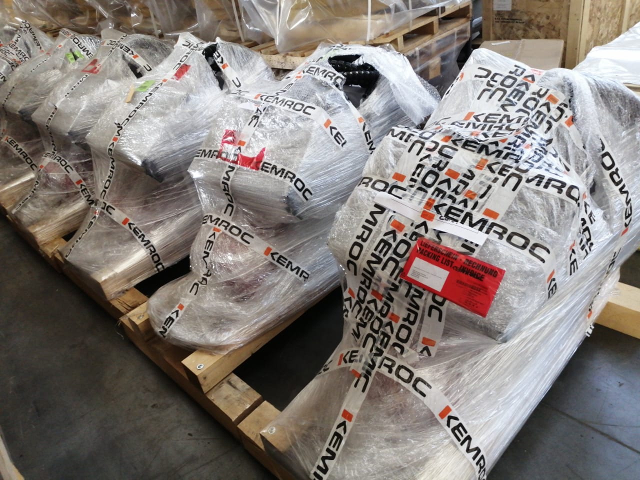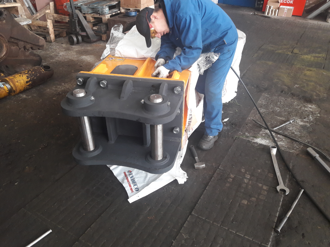 Подготовка к отгрузке челюстей для резки металла для гидроножниц IMP 25 производства завода Indeco, Италия.